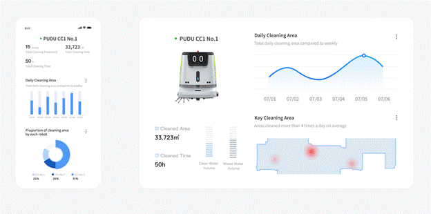 Thông qua cảm biến và hệ thống tự động, robot có thể tự đo lượng nước cần thiết theo diện tích và độ bẩn của sàn; đồng thời, khi đầy rác hoặc hết nước, hệ thống sẽ tự xử lý để chuẩn bị cho ca làm việc tiếp theo. Điều này giúp giảm thiểu các hoạt động bảo trì thủ công, nâng cao hiệu quả và tiết kiệm nhân lực.